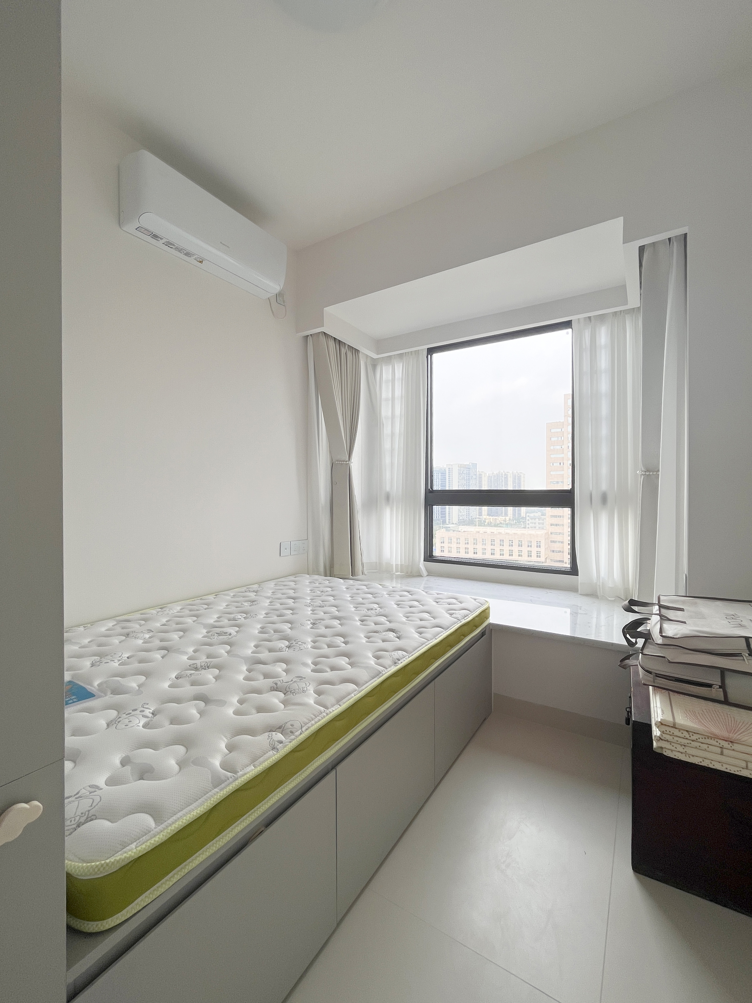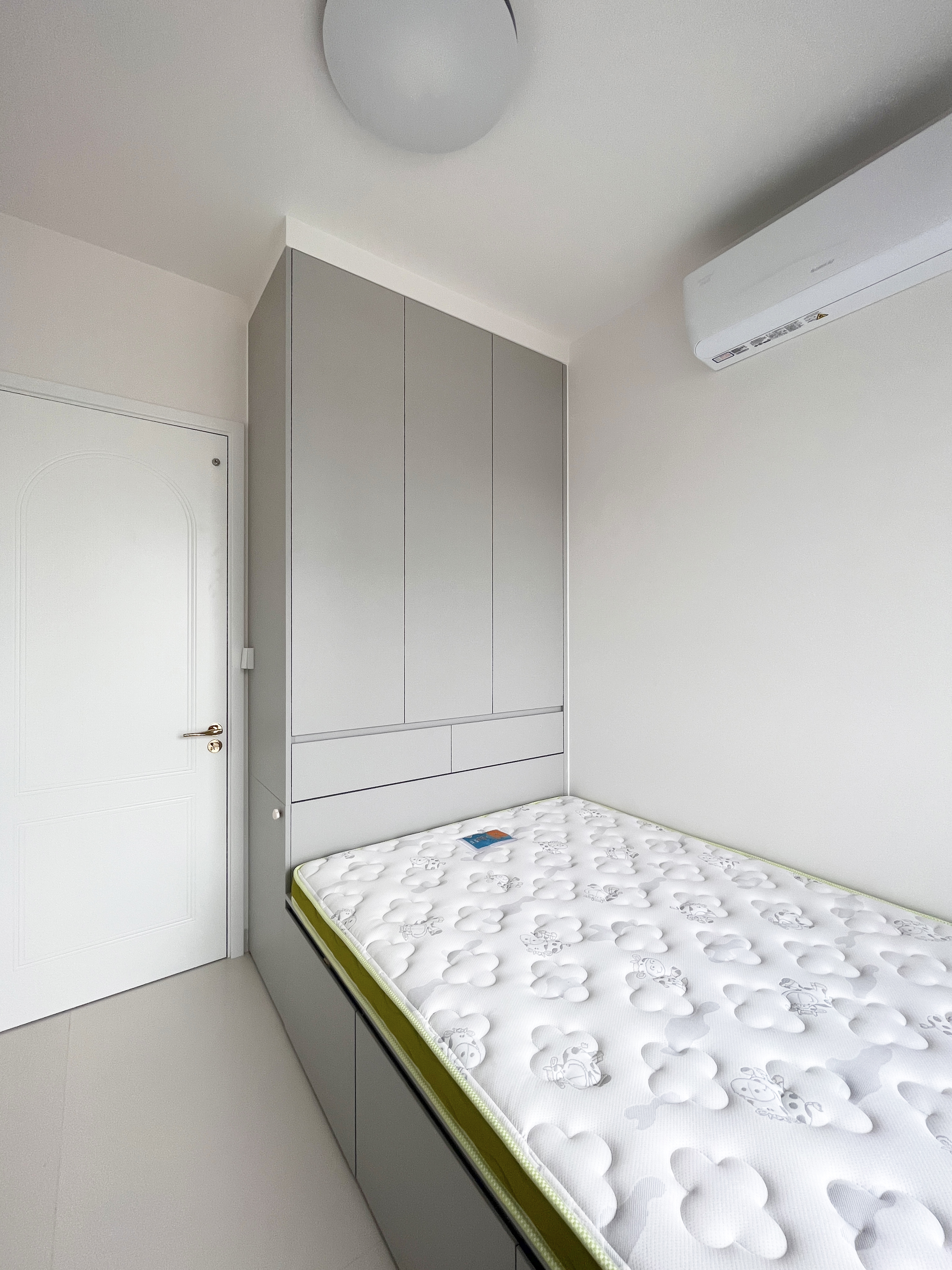 次臥空間更多的考慮了如何把收納空間做的更合理有效,因為本身的空間相對來說是比較少的,所以在次臥的設計上實現(xiàn)了不同房間的不同風格,并保證了走動空間的寬度,舒適且自在。