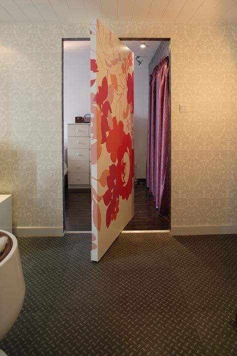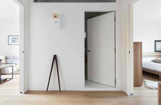 這種隱形門在使用上跟普通的門并沒有什么區別,但是外門上不設置把手,門的位置也和墻面處于同一水平線上,和背景墻融為一體。