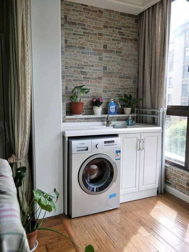 當你決定把陽臺裝修成晾衣區(qū)的時候,可以把洗衣機安裝在陽臺上。一來是為了方便使用,洗好的衣物可以直接晾曬;二來可以釋放衛(wèi)生間的空間,讓衛(wèi)生間更為寬敞。
