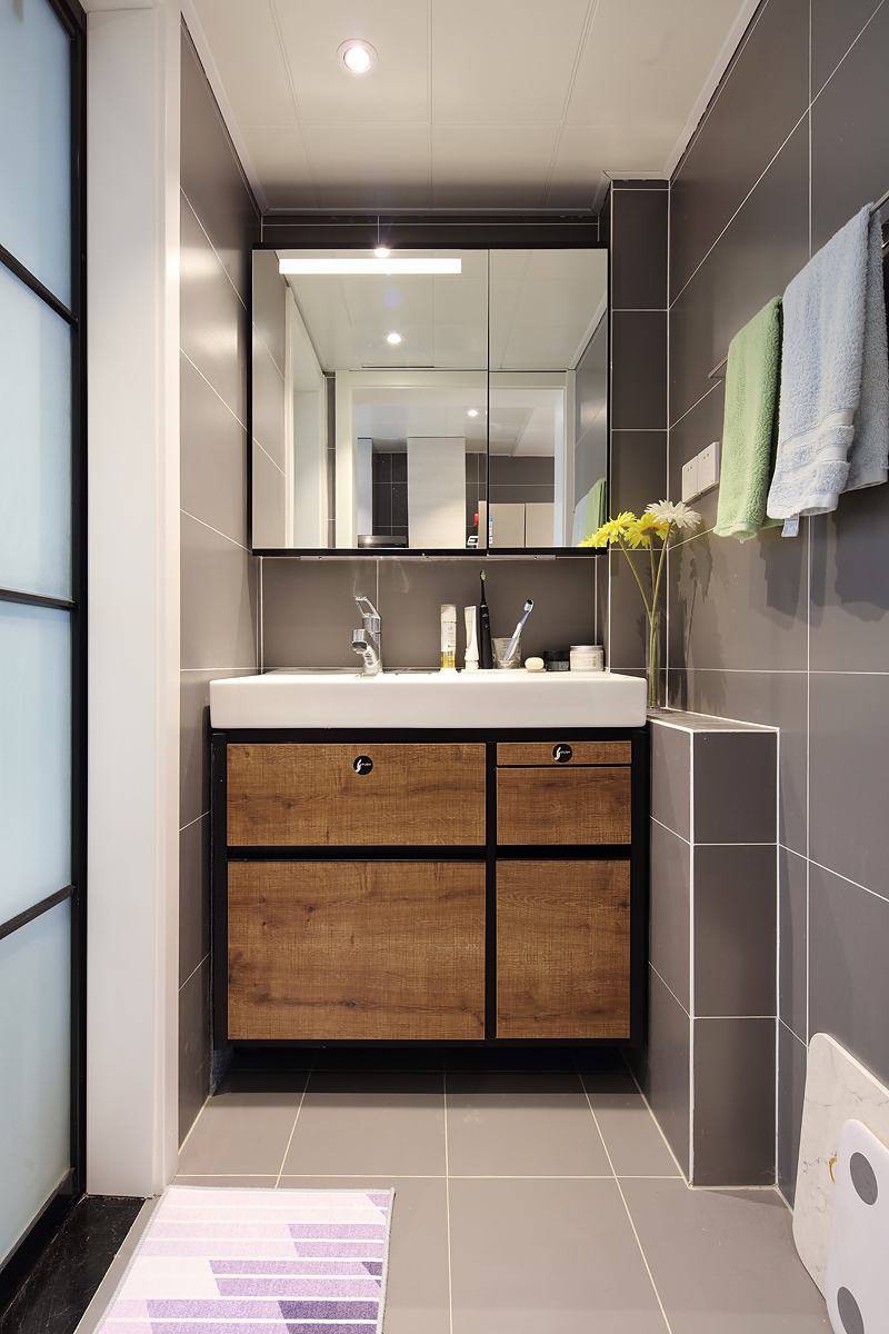 衛生間被一分為二劃為兩個區域,盥洗區和衛浴區。兩個區域有隔斷,使用的時候互不影響。