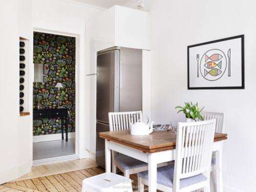 如果廚房的面積不足夠你擺放進一部冰箱,那么把冰箱放在餐廳也是和不錯的選擇。冰箱放在餐廳的優點,是可以避免冰箱遭受油污的侵擾,能夠長時間的保持干凈。缺點是有可能會妨礙到餐廳的動線。