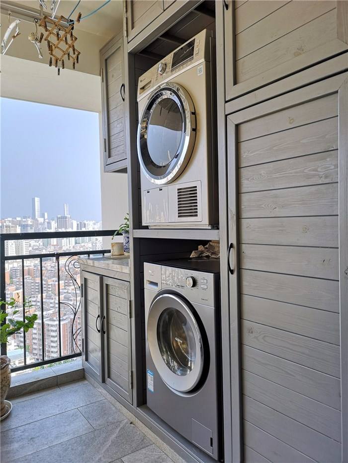 把陽臺當成洗衣區的業主不在少數,畢竟把洗衣間放在陽臺,既方便使用,洗完可以直接曬,而且還能釋放衛生間的空間。但是把陽臺當成洗衣機,并不是說簡單地擺上一臺洗衣機,就萬事大吉了。