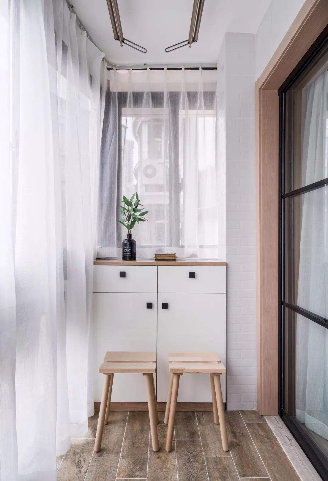 小戶型在裝修的時候,大多數時候都會秉著一寸空間都不浪費的原則去設計,所以陽臺這一片空間自然也不能錯過。陽臺的裝修方式有很多種,可以裝成休閑區,可以裝成洗衣區,也可以裝成儲物區。