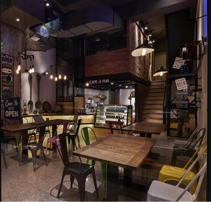 硬朗的工業(yè)風(fēng)裝修比較少見,新奇有趣,更能吸引住顧客。工業(yè)風(fēng)的奶茶店裝修起來也比較簡單,用灰色搭配鐵藝或者金屬,用射燈打造層次感,同時也需要添加一些裝飾緩和一下工業(yè)風(fēng)的冰冷感。