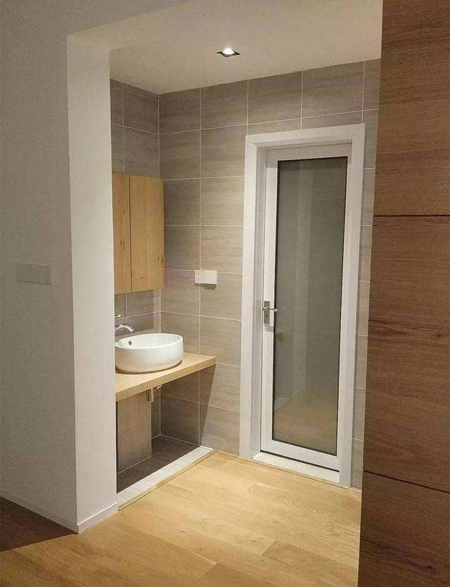 大多數設計師,都很注重衛生間干濕分離的打造,除了把淋浴區和衛浴區隔開來以外,還可以把盥洗臺外移,并且安裝隔斷,把衛生間分成三個功能區,不僅衛生、方便打掃,還可以單獨使用,互不影響。
