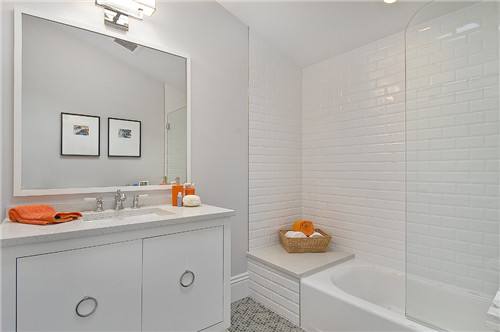 用單色瓷磚來鋪設衛生間,會顯得比較單調,所以設計師一般都會選擇加上適當的花磚作為點綴。可以在馬桶后面的墻壁或者衛生間的墻壁上多做裝飾,這樣整體效果也會看起來更加時尚、美觀。