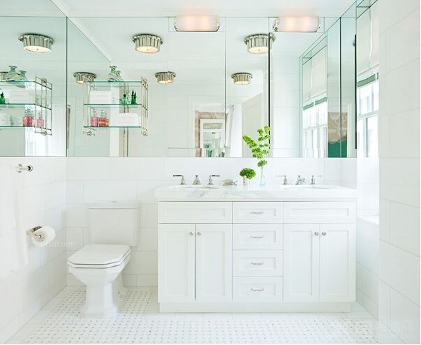 要想衛(wèi)生間看起來寬敞明亮,在選擇衛(wèi)生間瓷磚或者墻面主色調的時候,就要注意選擇明亮的淺色調。一般來說,白色最為常見,但如果你覺得白色太過死板單調,可以選擇淺藍、淺灰、黃色等顏色。