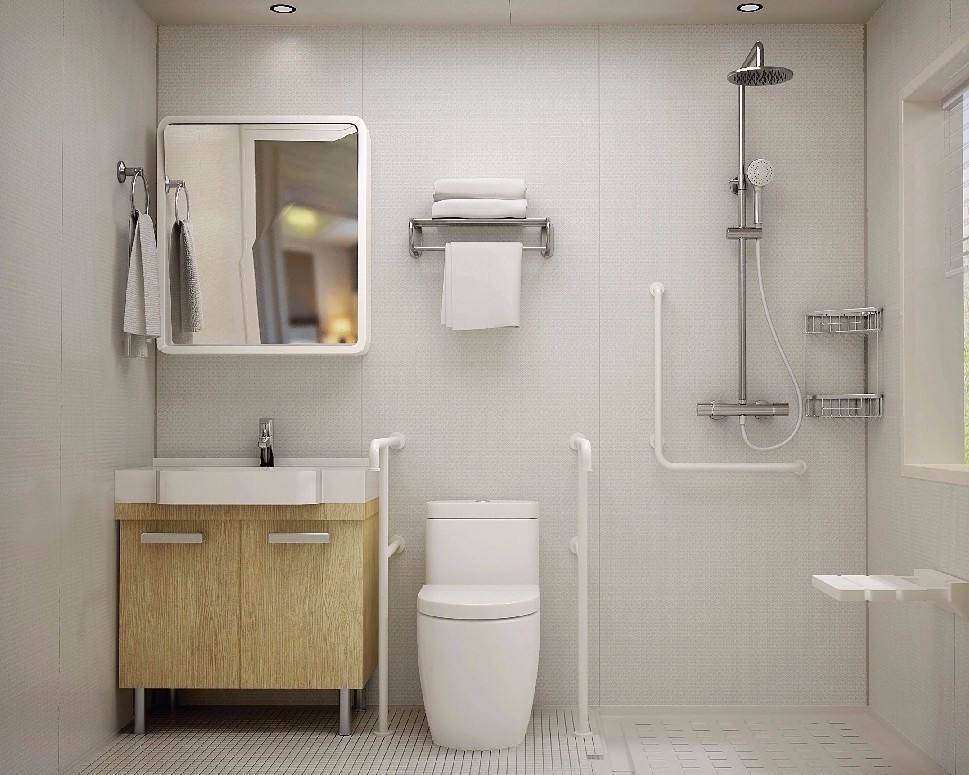 在衛(wèi)生間面積不大的情況下,要盡量避免選購尺寸大、裝飾華麗的潔具,這只會讓整個空間比例失調,顯得十分擁擠。對于小戶型的衛(wèi)生間來說,可以適當精簡潔具,并且注意保持潔具之間的距離。