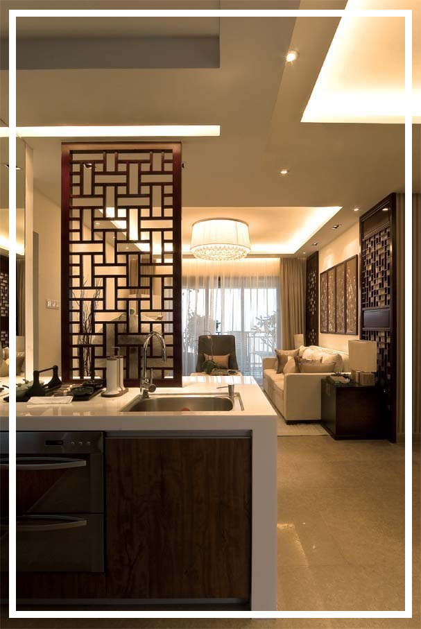 屏風(fēng)的樣式與客廳沙發(fā)背景墻相呼應(yīng)