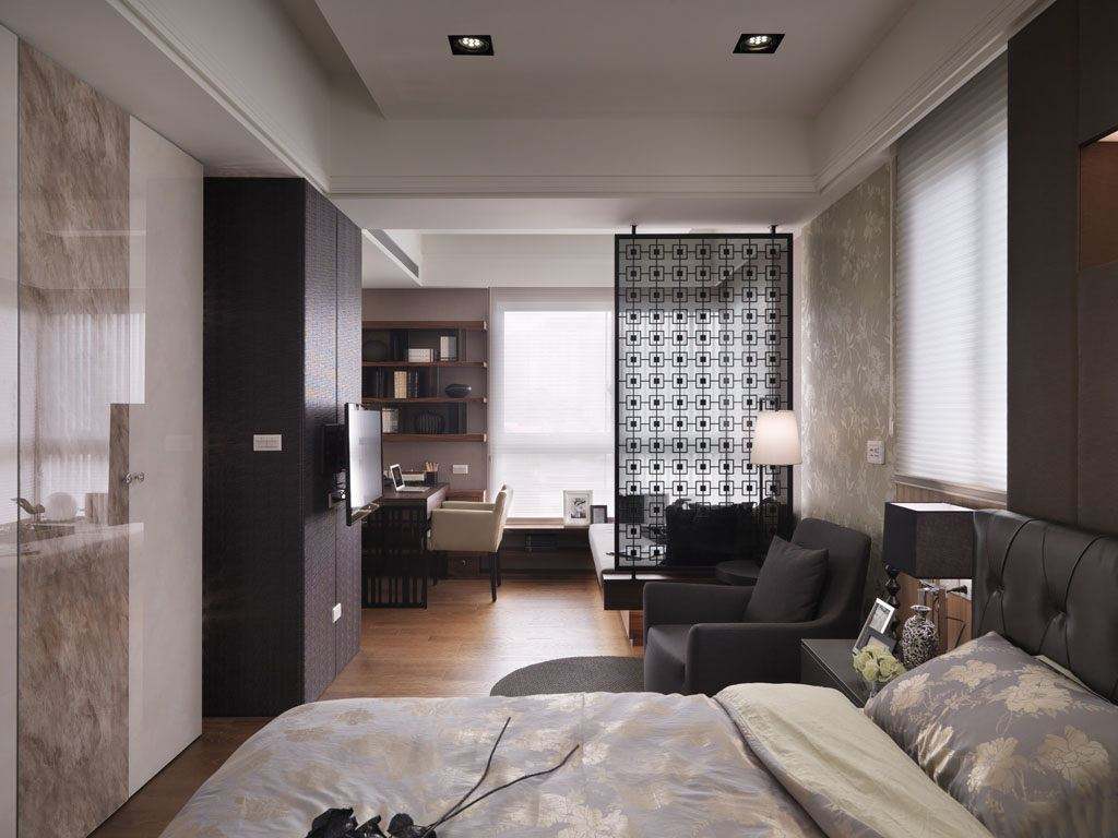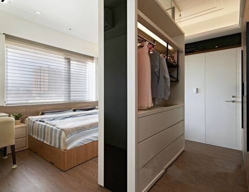 把臥室一分為二,除了留下主要的休息空間以外,另一個空間區域,可以打造成衣帽間、化妝區、休閑區或者一個小的工作區。如果想要在使用該空間的時候,不會影響到主臥的休息環境,可以適當地添加隔斷。