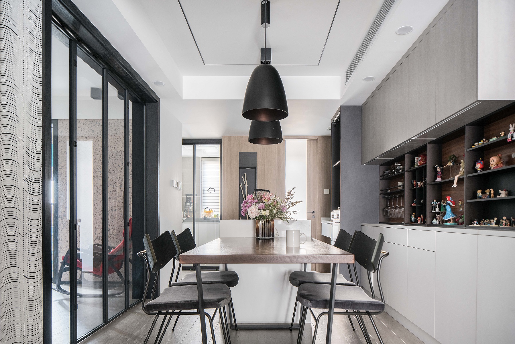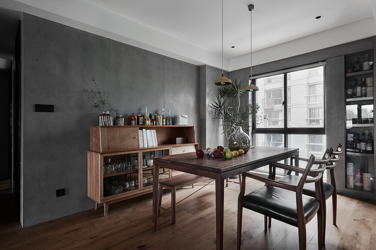 這是一套深色的現(xiàn)代風(fēng)三居室