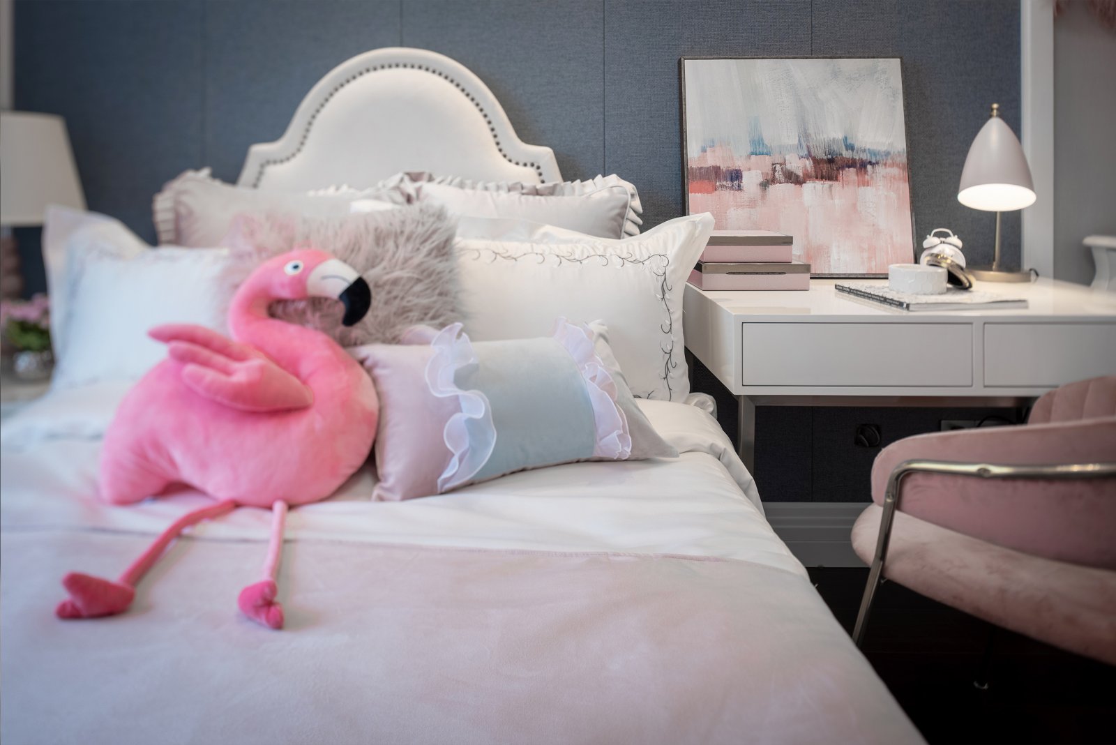 在布置上就可以盡量打造出一個(gè)公主房的感覺
