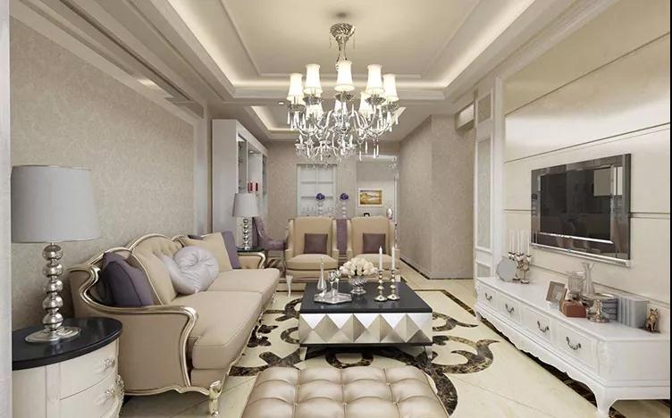厚重電視墻+好幾層石膏線+黃色花壁紙+bulingbuling的水晶吊燈,富麗堂皇、雍容華貴的復古宮廷風,雖然也是歐式,但是這用力過猛的“壕”式歐式風肯定不是想要小伙伴們想要的風格。
