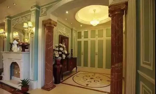 而我們裝出來卻是這樣子的,羅馬柱是歐式風格的重要元素,只是羅馬柱還是比較適合高挑的房屋裝飾,我們的住宅層高不夠如果強行搭配本應頂天立地的羅馬柱,辣眼睛的畫面不忍直視,但如果是在想要這一元素的存在,既然層高縮小的,那羅馬柱的比例可以跟著縮小,將其置于墻體轉角處這樣既可以保留羅馬柱的元素,也不影響美觀。