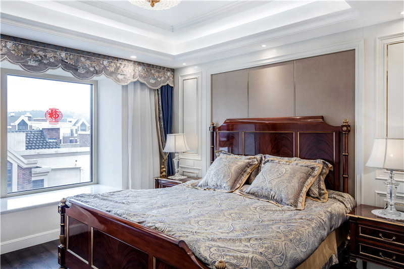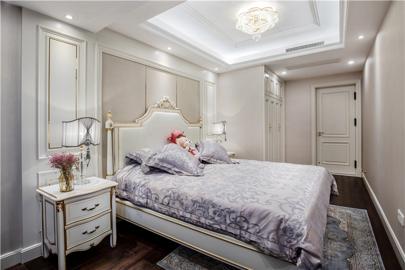 一些別出心裁的金屬設計,為整個空間增加了輕奢的感覺,臥室里的軟裝,也藏了很多美式風格在里面。