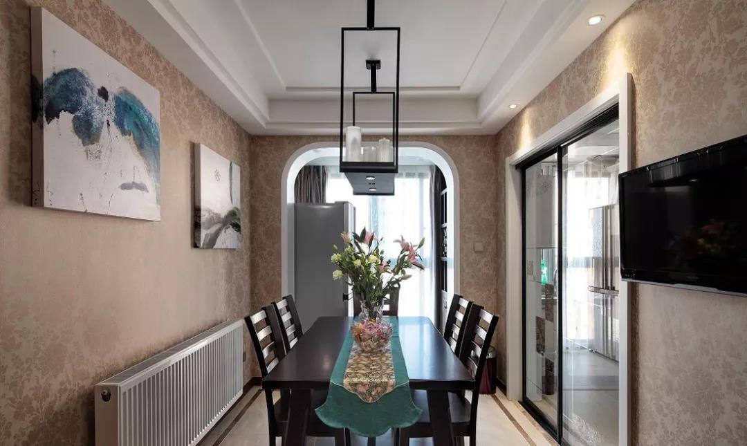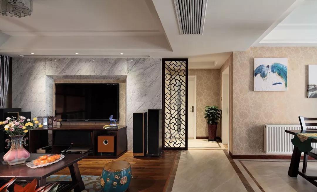 中式風的特色,在這套三居室里體現得十分明顯。就連裝飾畫也多是水墨風,木質的家具有一種厚重感,彰顯文化底蘊。