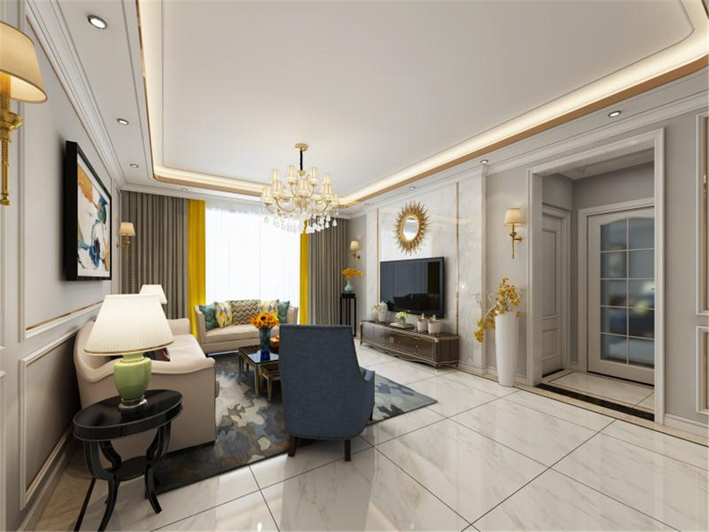 南寧瀚林錦城毛坯房78平米美式風格裝修案例效果圖