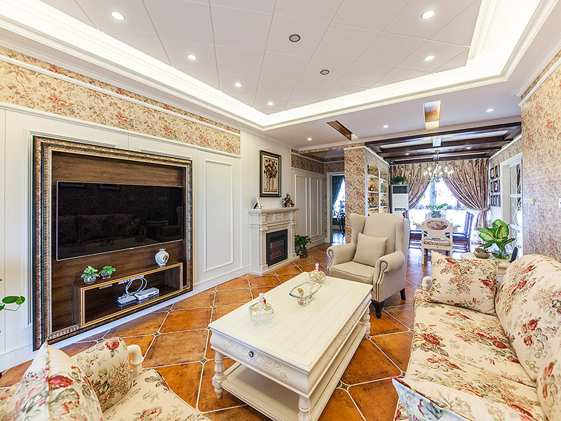 因為女主人對碎花的布料情有獨鐘,所以設計師將碎花的元素完美地應用在了客廳裝飾上,整個客廳仿佛成了一份包裝精美的禮物。