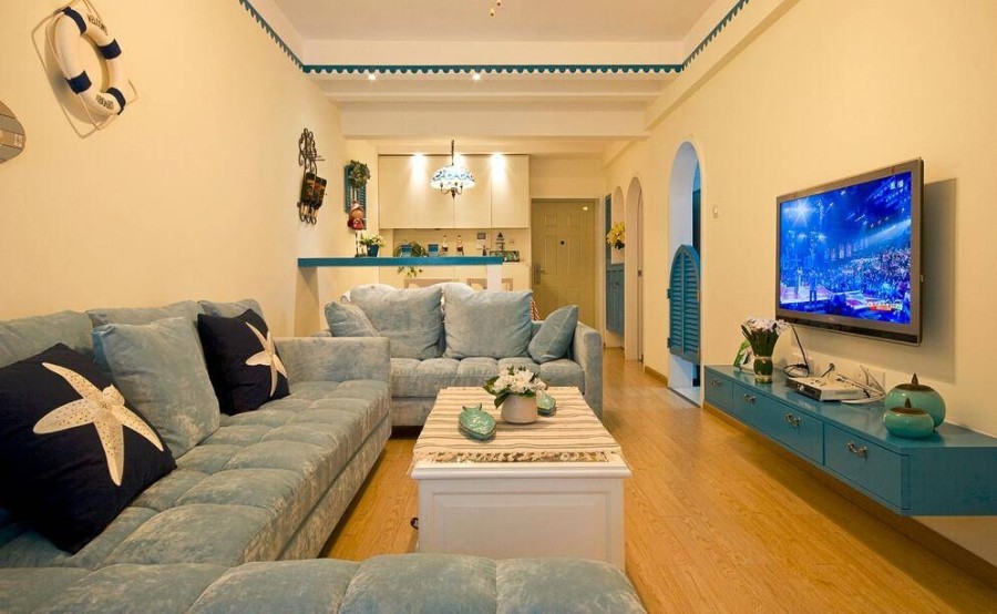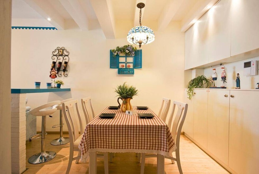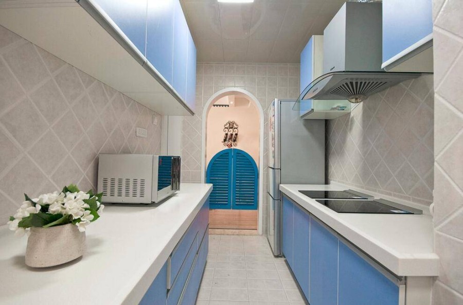 白色為主,藍色做點綴,仿佛身處白墻紅瓦的希臘海邊小鎮,拱門的設計是滿滿的異域風情,地中海風格的特色很是明顯。
