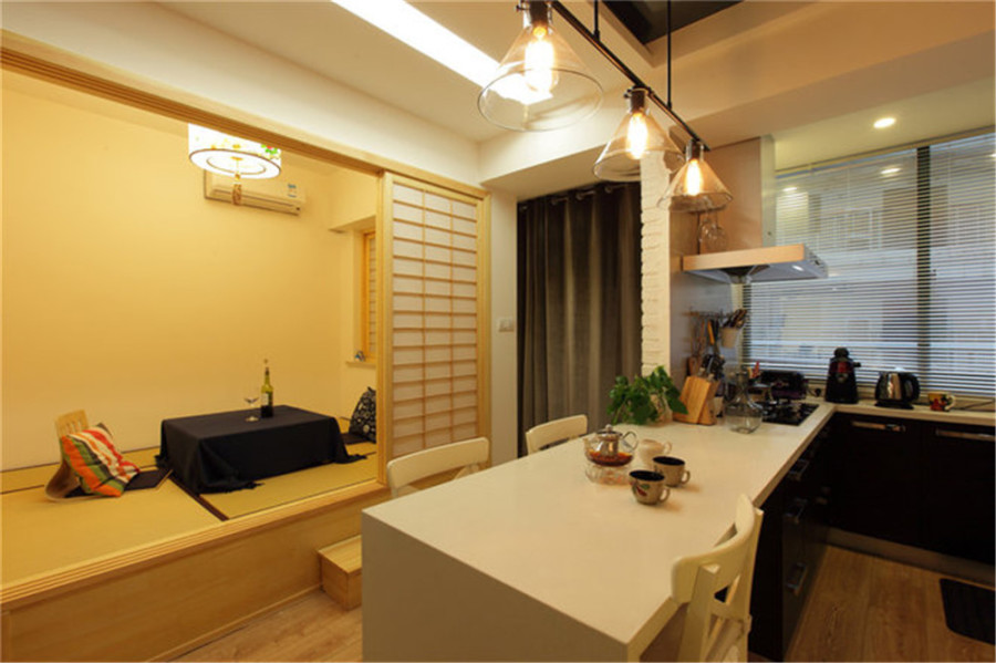 餐廳旁邊的日式榻榻米,是根據(jù)業(yè)主的要求,特意設(shè)計(jì)出來的空間。有代替書房和會(huì)客廳的功能,關(guān)上推拉門以后,不用擔(dān)心會(huì)被打擾。