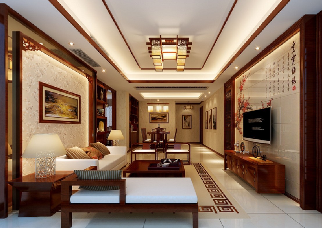 南寧萬科金域緹香136平米中式風格案例效果圖