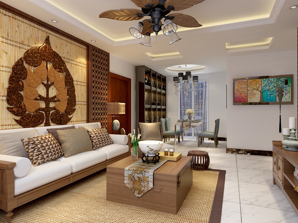 客廳的裝潢很有東南亞風味。