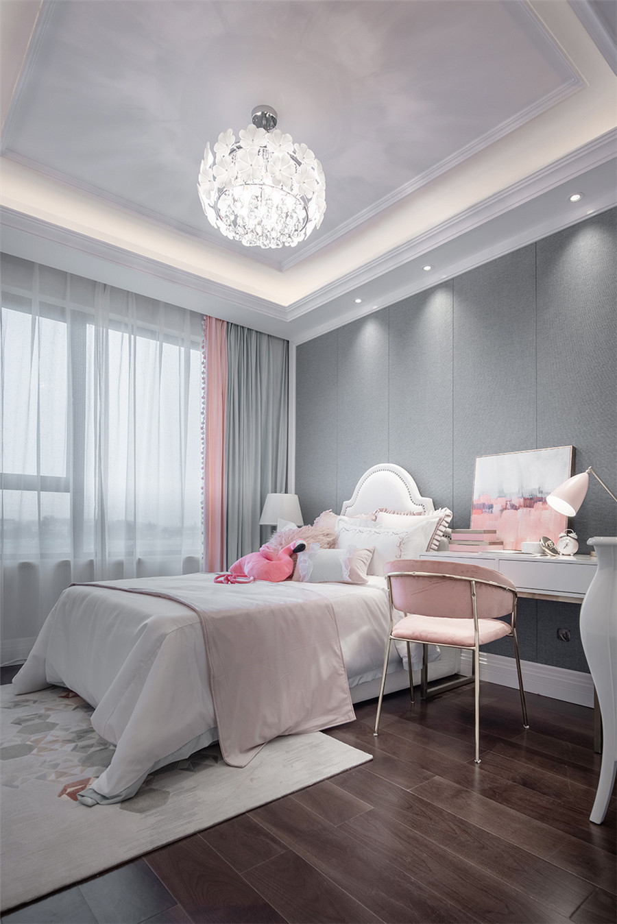 業主夫妻很喜歡歐式風格的貴氣與華麗,但是他們又不希望家里的配色太多,整體上盡量簡潔一點,所以就有了這樣一套簡單典雅又不失貴氣的歐式案例。墻面和家具的主色調是白色,配以木色的地板,簡單大方。每一處的家具都體現出了精致的美感,輕奢、典雅、貴氣。