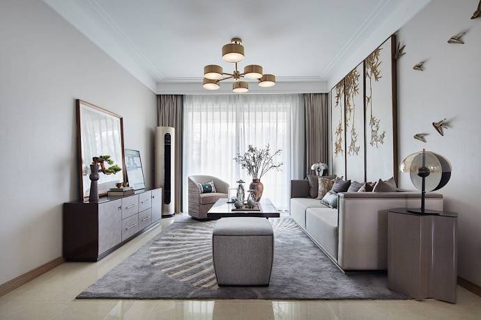 竹子、飛鳥、臘梅,這些元素一結合在一起,你就能很明顯地看出業主的喜好。業主喜歡中國傳統文化,也喜歡中式風格的裝修,但是也要考慮家里妻子和孩子的喜好,所以就有了這樣一套簡單時尚、禪意十足的新中式裝修。如果只用黑白水墨打造中國風,未免太單調,所以設計師加入了一點孔雀藍的色彩,質感十足。