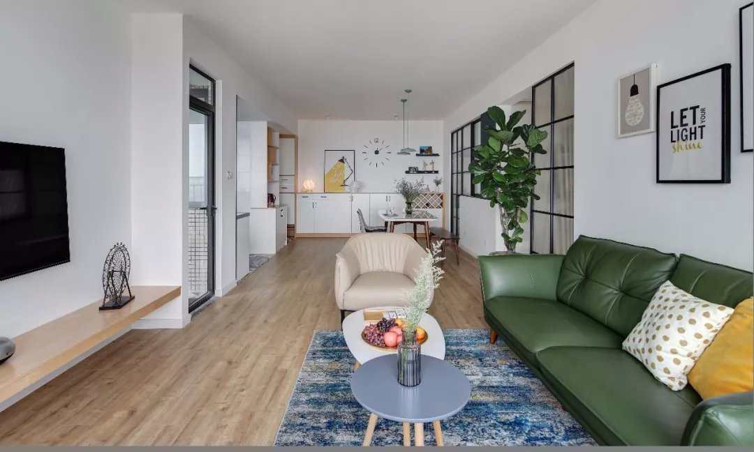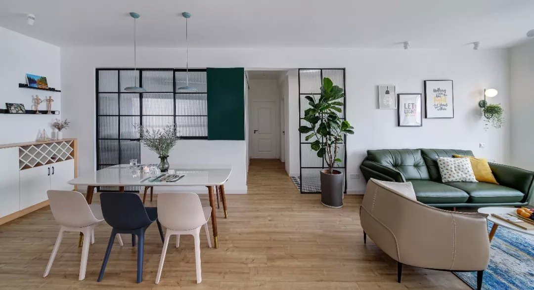 來裝修的業主是一位年輕的姑娘,她說她和她老公剛領證,這是他們倆人的婚房,所以希望設計上不要太沉悶,盡量輕快一些。這套北歐風的二居室所使用的裝飾都很簡單,但是卻做到了以簡勝繁,以少勝多的效果。它既有北歐風簡潔實用的特色,也有一絲浪漫優雅,每一處小設計都別出心裁。