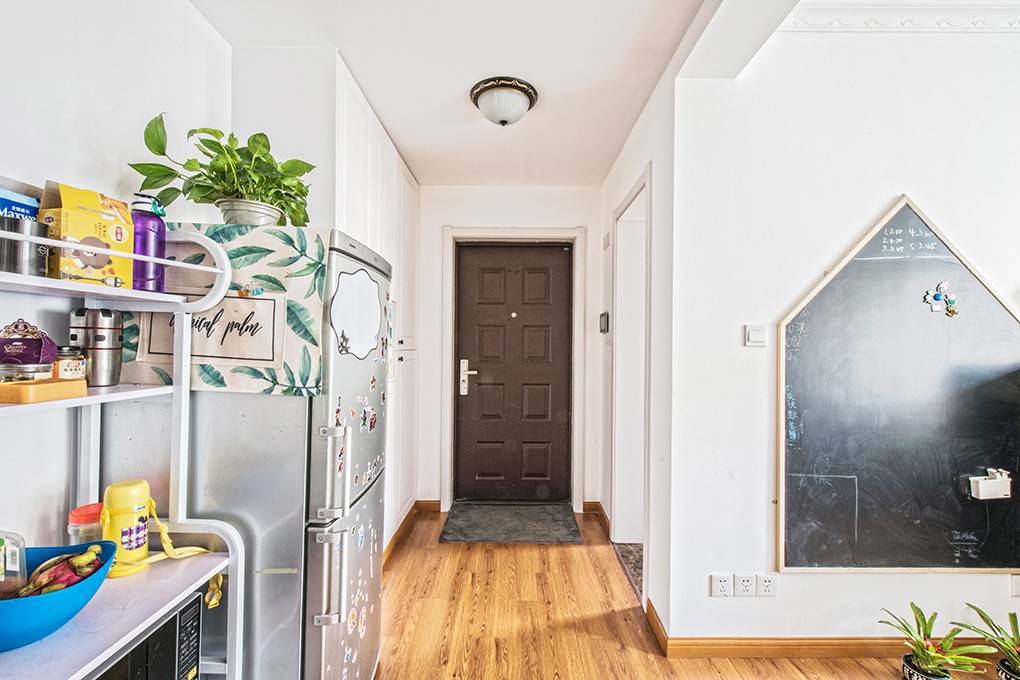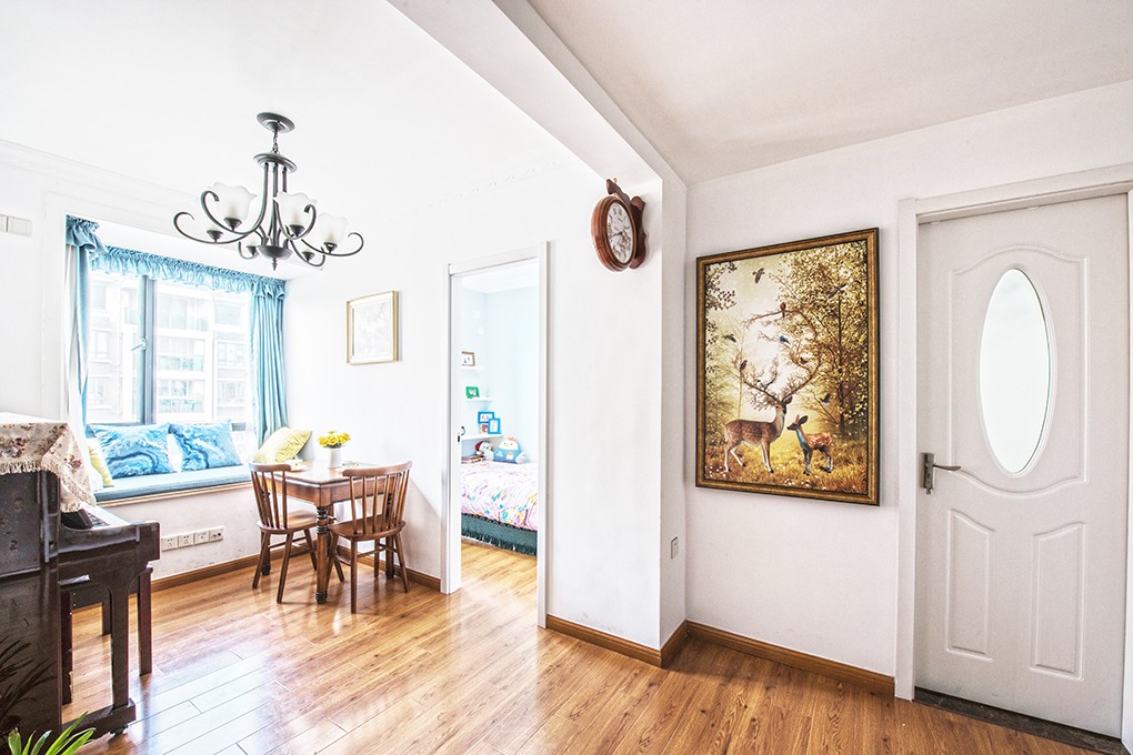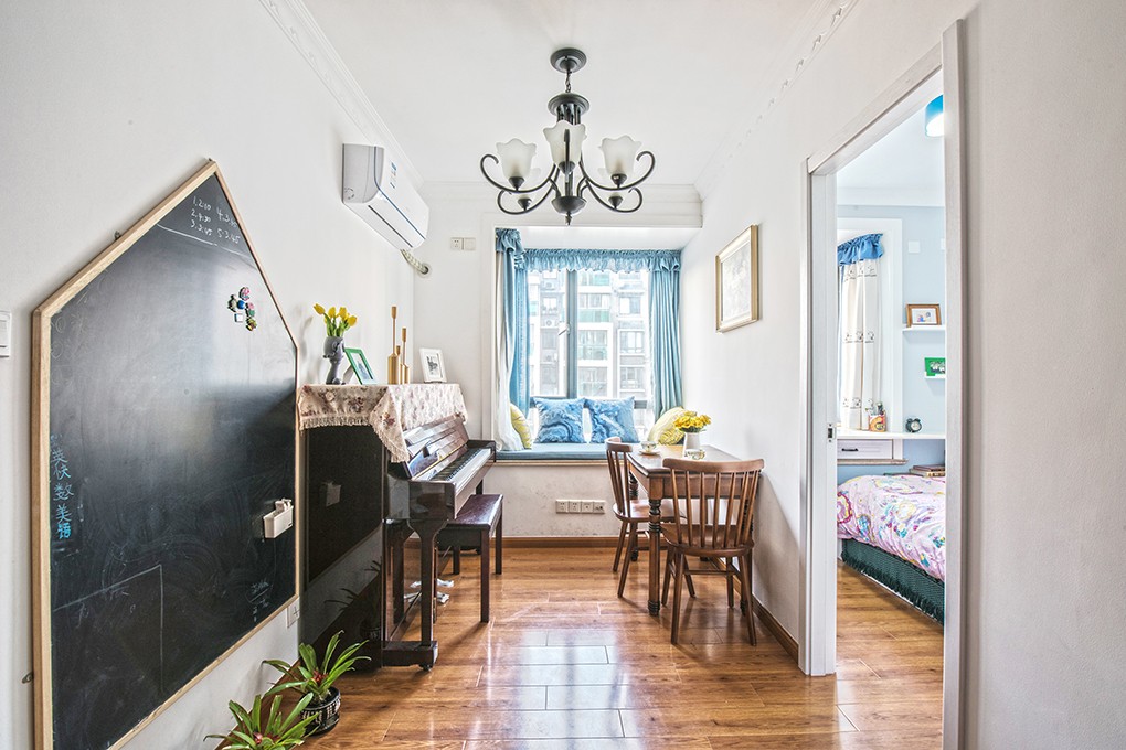 業主夫妻和女兒一起居住,所以一套二居室的小戶型完全足夠了,清新、自然、舒適、愉快的氛圍很適合小朋友的成長。因為客廳位置并不太足夠,所以沒有擺放沙發電視之類的家具,簡單的飄窗就是最適合的休閑區。