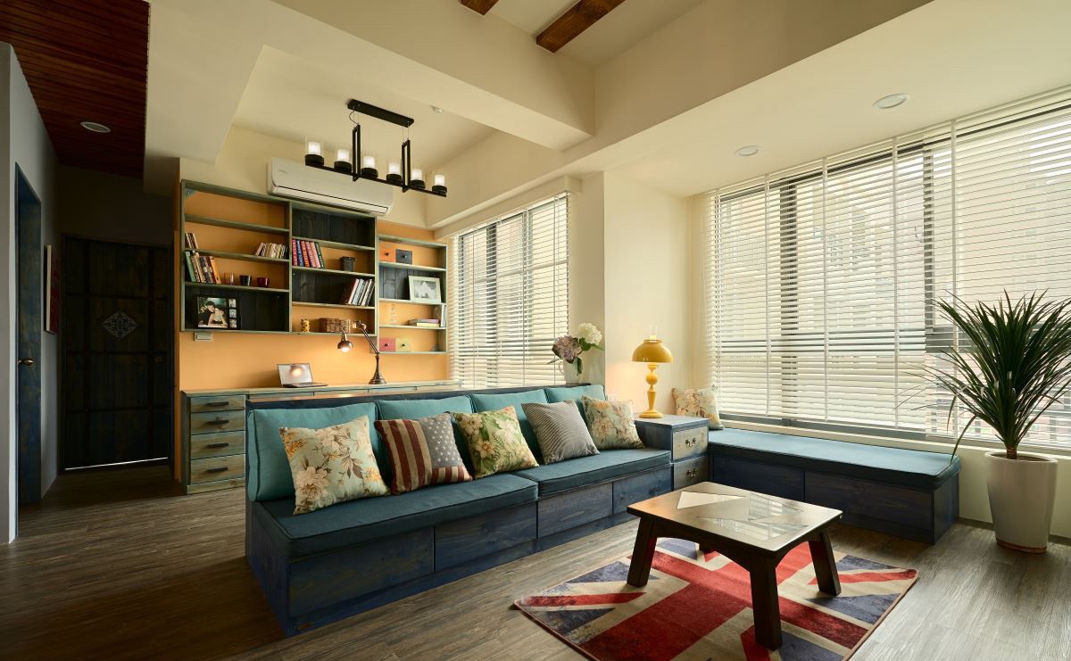 在快節奏的生活里,田園風格是緩和壓力的良藥。下班后推開門,碎花和綠植的裝飾,讓你感覺自己置身于鄉間小屋,暖光的燈光打造溫馨舒適的氛圍。電視背景墻設計感十足,磚瓦的設計復古感滿滿,簡單的展示架可以用來放置一些書籍,很是實用。