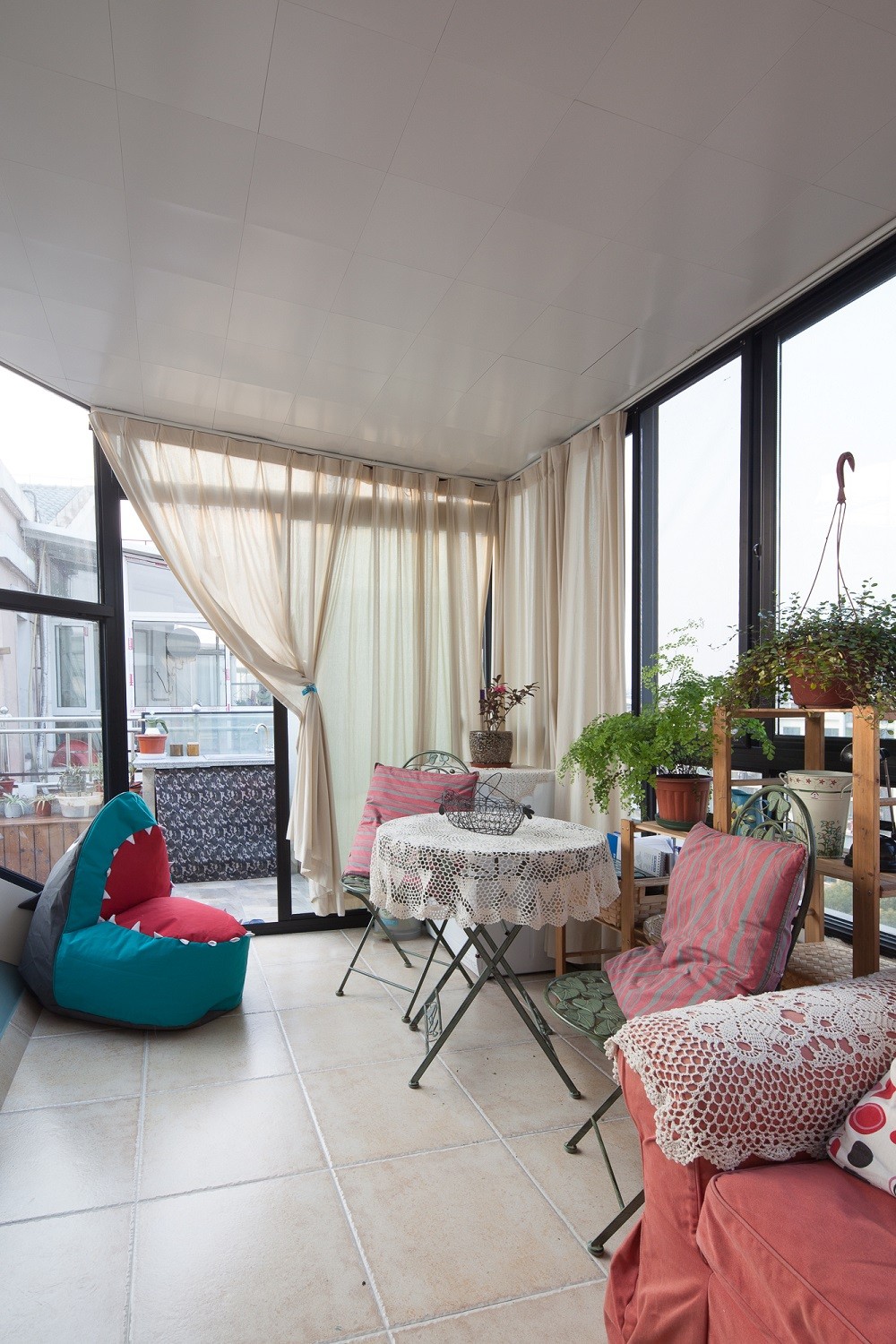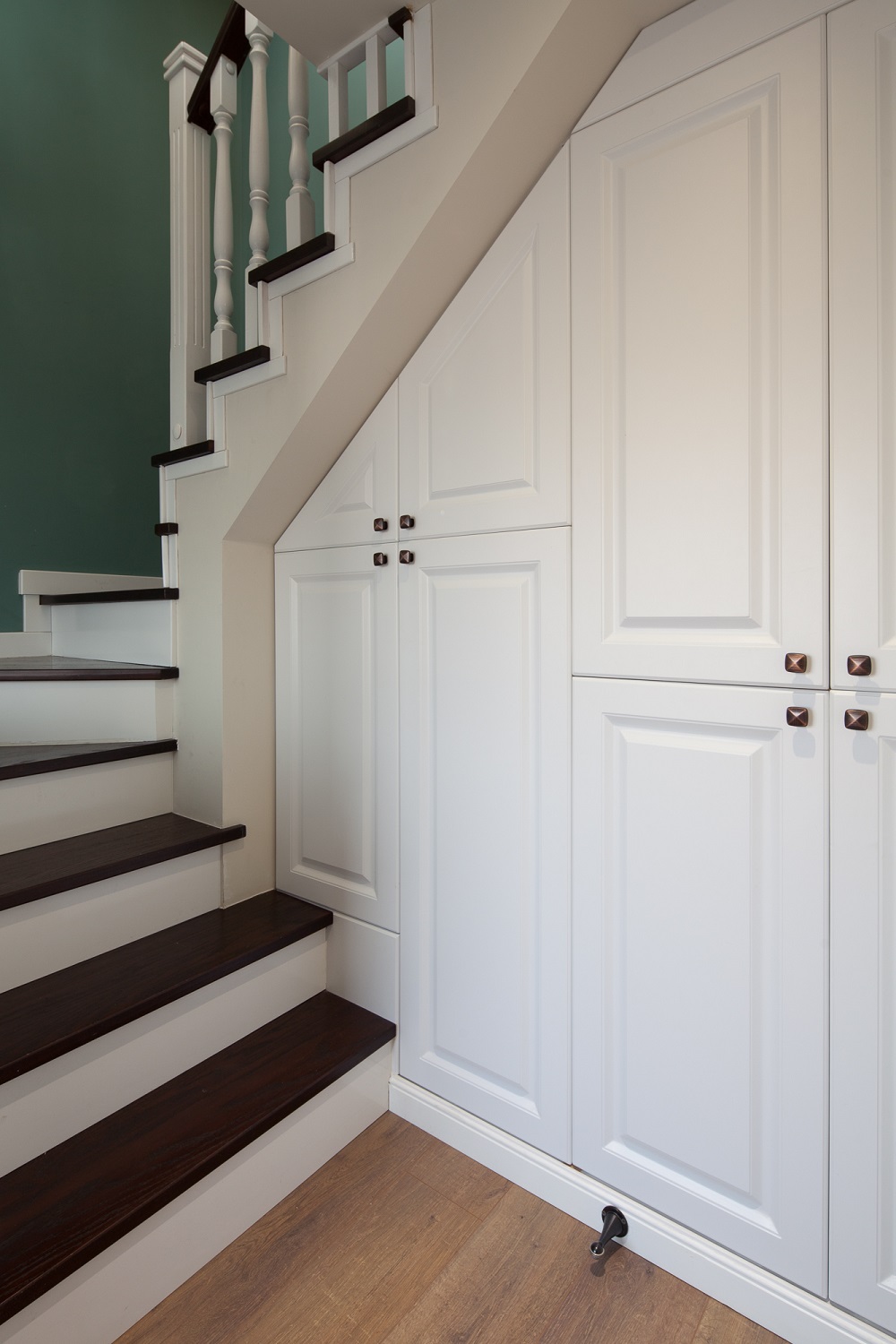 這套美式風格的案例,能夠給人帶來一種寧靜感,清新自然的色調,精心挑選的裝飾,滿滿都是度假風。通過樓梯往上走,就是一面視野極其開闊的天臺,擺上舒適的沙發與桌子,拿來當做休閑區是最好不過的選擇了。