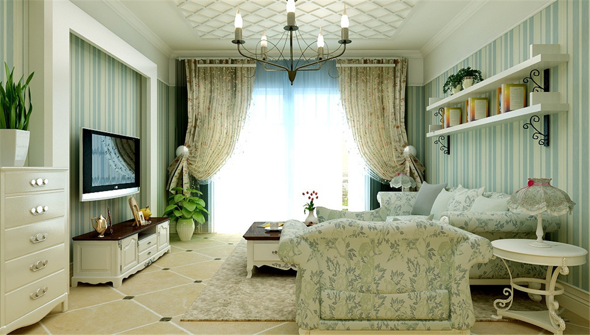 南寧陽光西岸102平米毛坯房田園風(fēng)格裝修案例效果圖