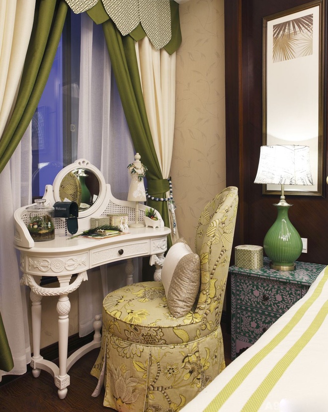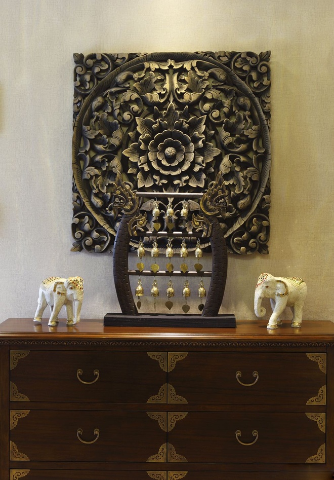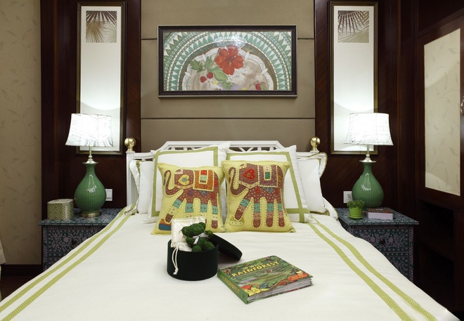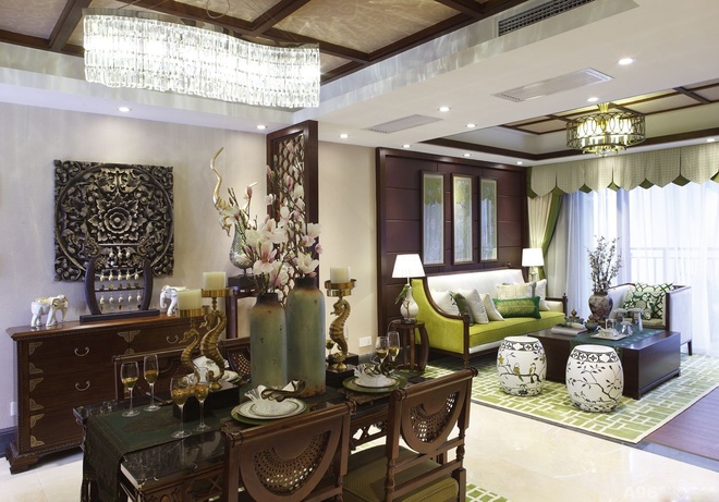 業主喜歡東南亞風格里的特色民族風情,這套東南亞風格運用了很多民族元素的裝飾,用綠色做點綴,搭配上木色的家具,會有一種自然的感覺。東南亞風格注重打造一種奔放感與自由感,家居風格別樹一幟。