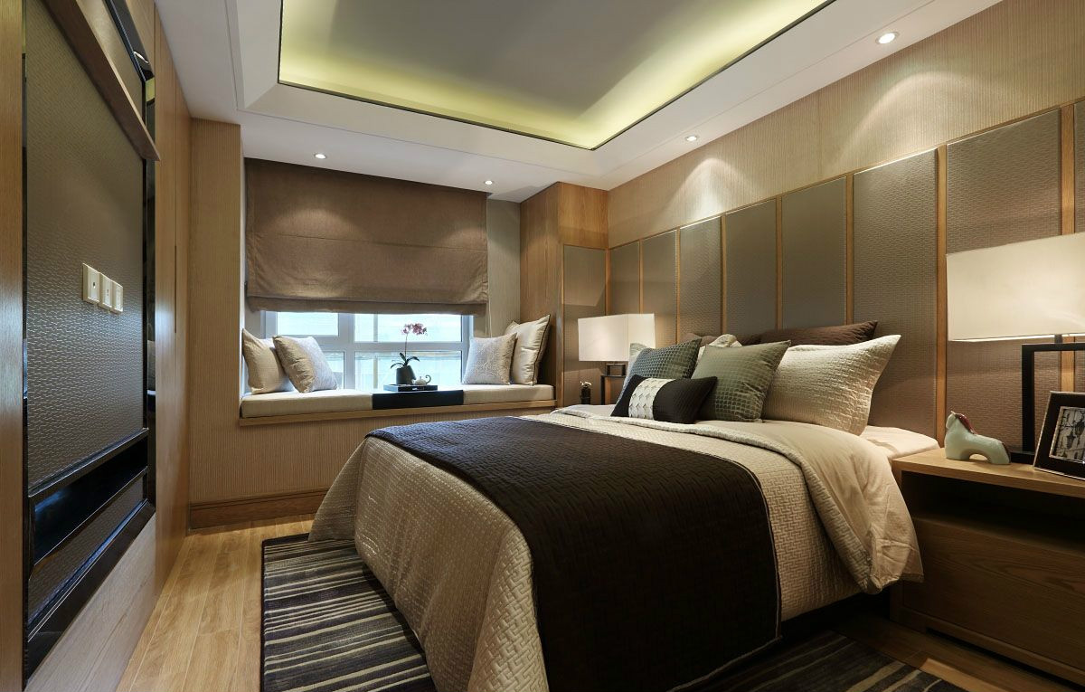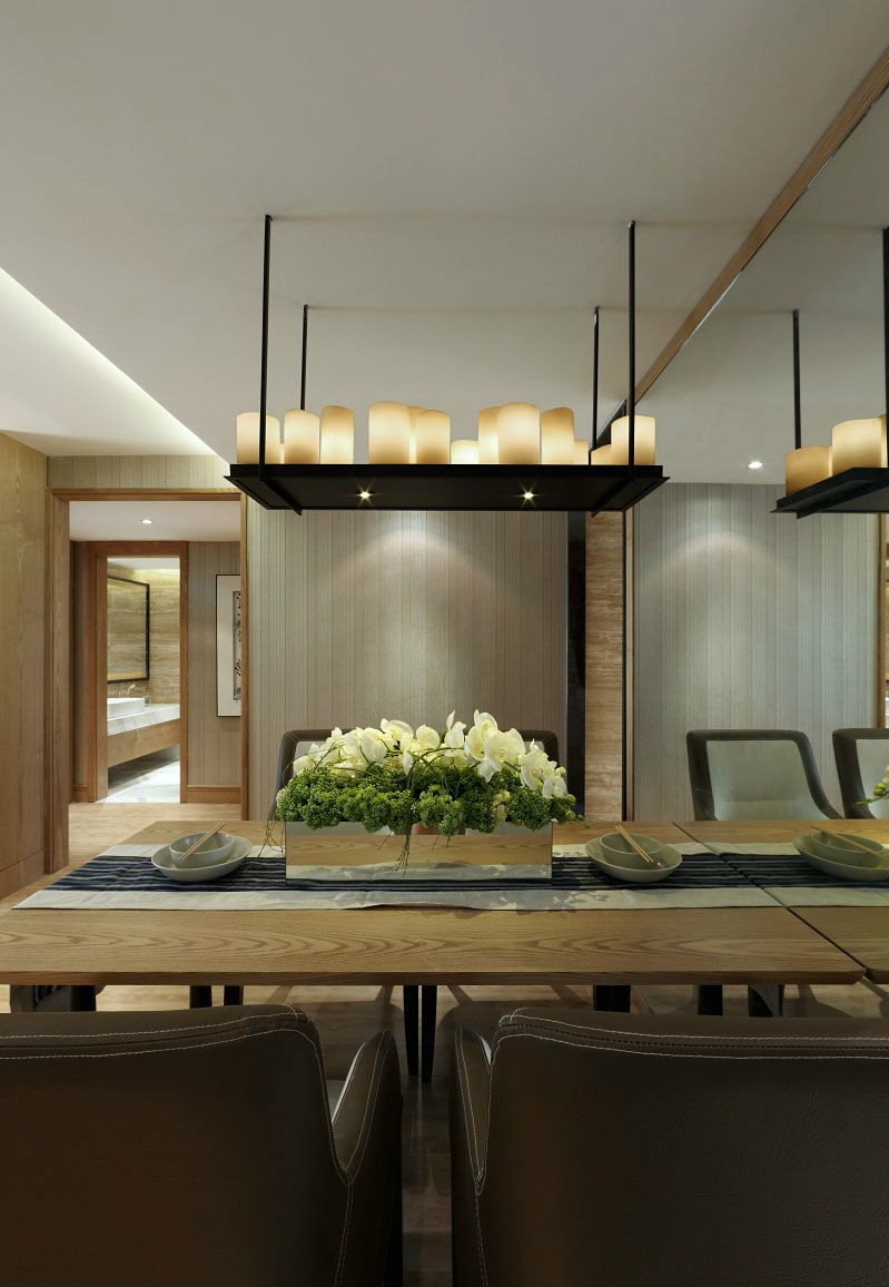 這套后現代風格的氛圍偏向于成熟穩重,因為戶型足夠大,所以就算是用深色作為主色調,也不會顯得狹小逼仄。吊頂藏光的設計,以及各式各樣的燈具,給整個空間增添了不少層次感。