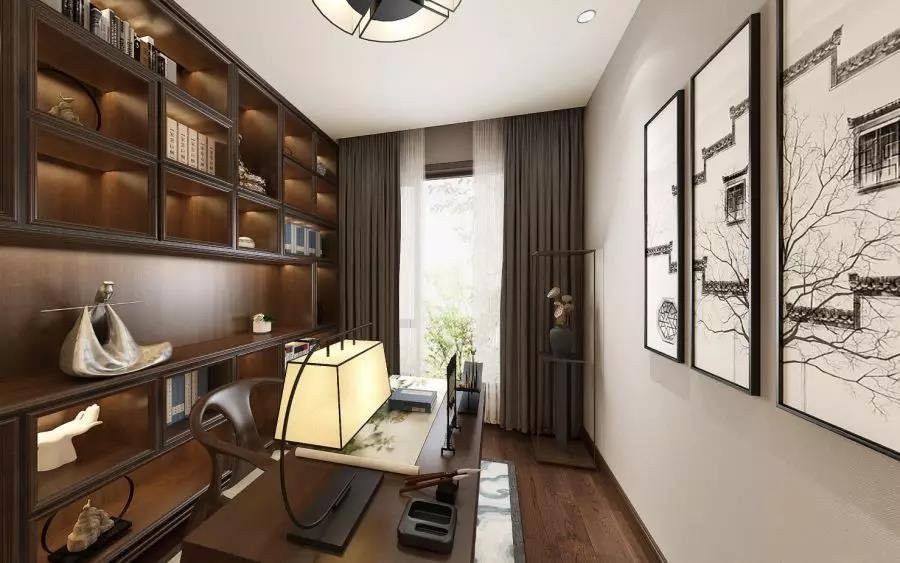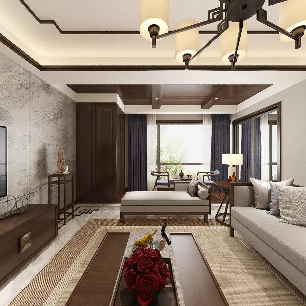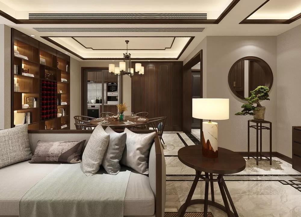 南寧中海·環宇天地毛坯房126平米新中式風格裝修案例效果圖