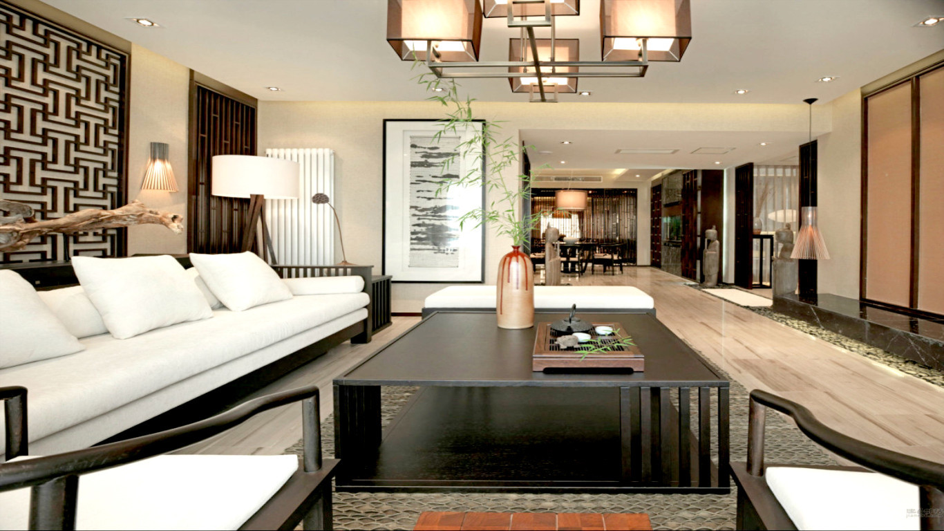 南寧國悅·九曲灣毛坯房97平米中式風(fēng)格裝修案例效果圖