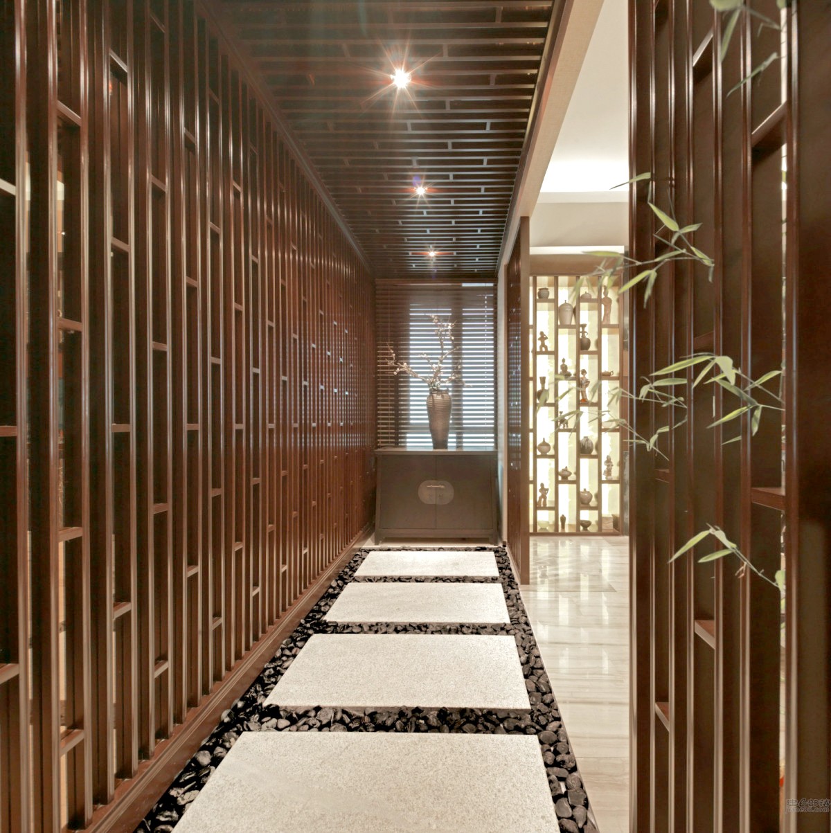 這是業(yè)主為父母準(zhǔn)備的養(yǎng)老房,因為老人家比較喜歡中式風(fēng)格,所以在裝修上以傳統(tǒng)中式為主,適當(dāng)添加一些現(xiàn)代元素,打造了這樣一份獨(dú)一無二的家居環(huán)境。走廊處的設(shè)計最有意思,一整排鏤空的隔斷,頗有一種穿越的感覺。