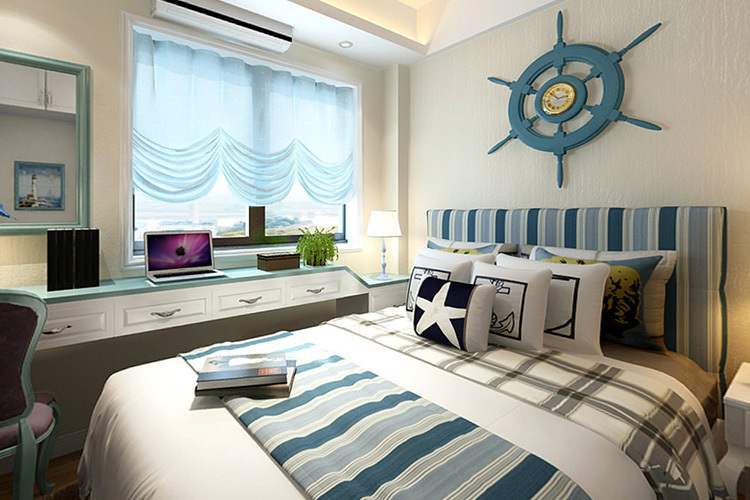 業主是一對年輕的小夫妻,對新奇有趣的裝飾都有一種嘗試性,所以他們選定了地中海風格作為家裝的主風格。海洋的元素在這套二居室里被廣泛運用,雖然戶型面積比較小,但是整體氛圍十分溫馨。