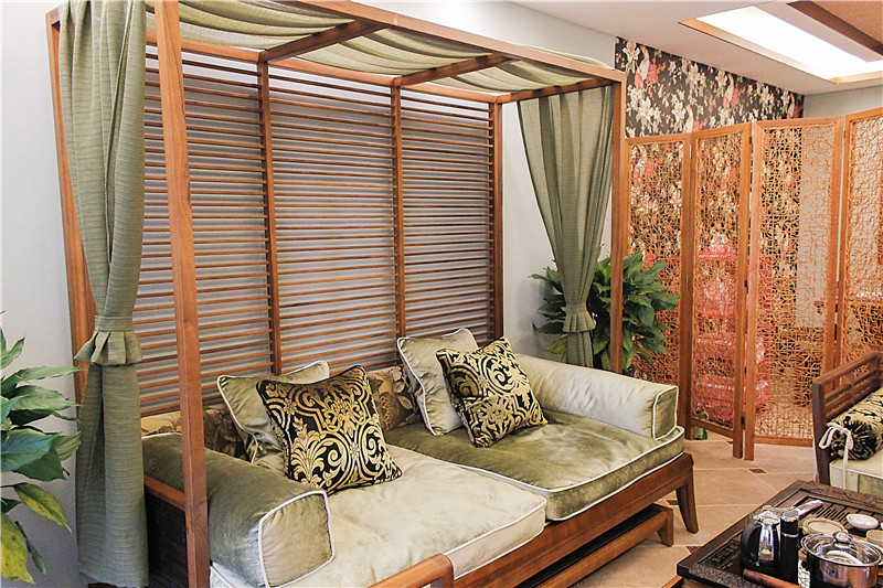 業(yè)主喜歡東南亞風(fēng)格的異域感與大氣感,客廳給人的第一印象就是豪華與穩(wěn)重,但是細(xì)看又處處精致。東南亞風(fēng)格崇尚保留材質(zhì)的本味,所以木質(zhì)的家具從來不會用太多的裝飾去掩蓋,自然而然地流出一種優(yōu)雅感。
