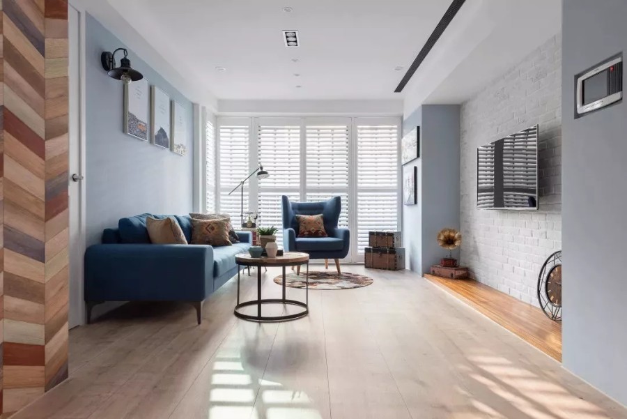 南寧瀚林錦城毛坯房78平米美式風(fēng)格裝修案例效果圖