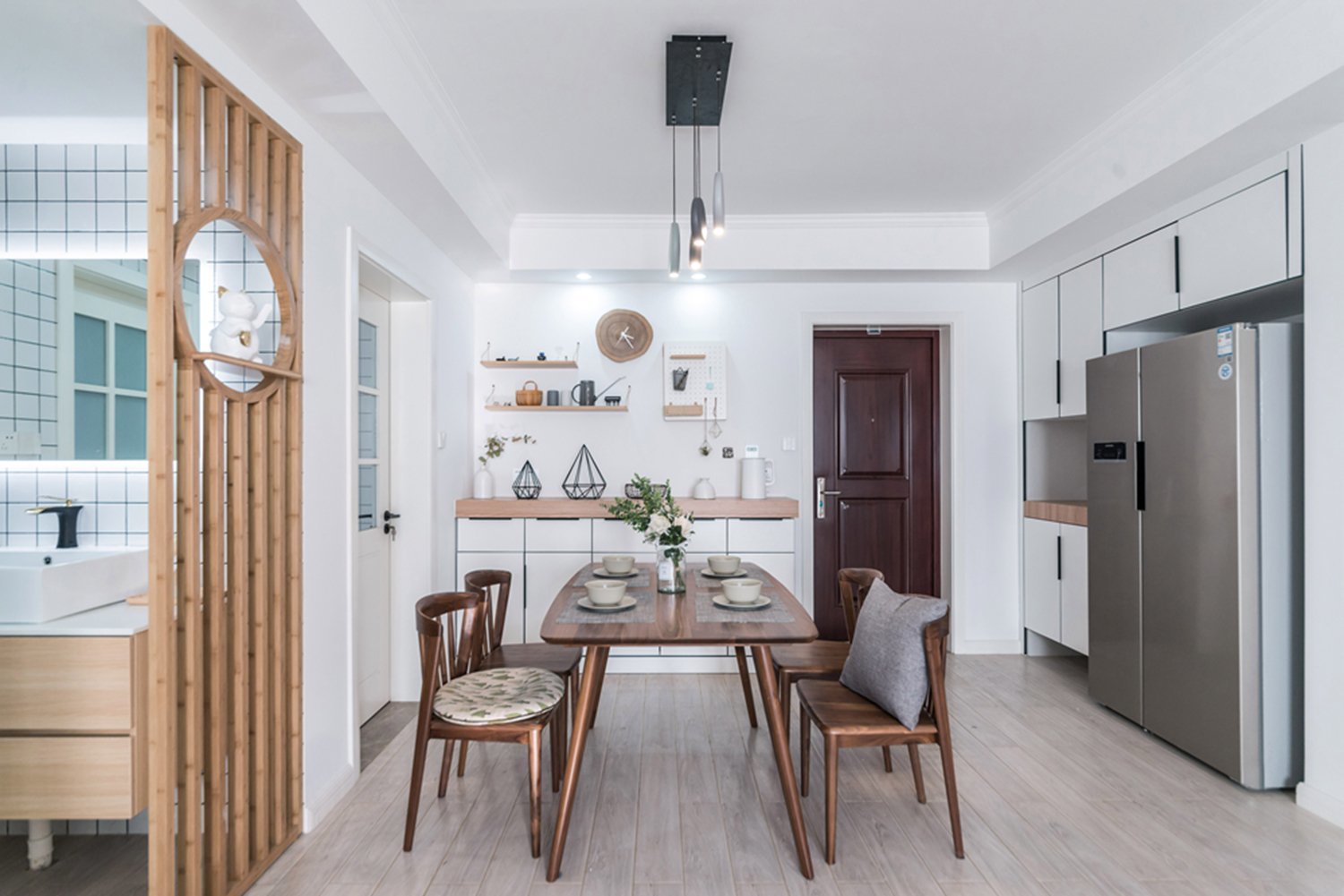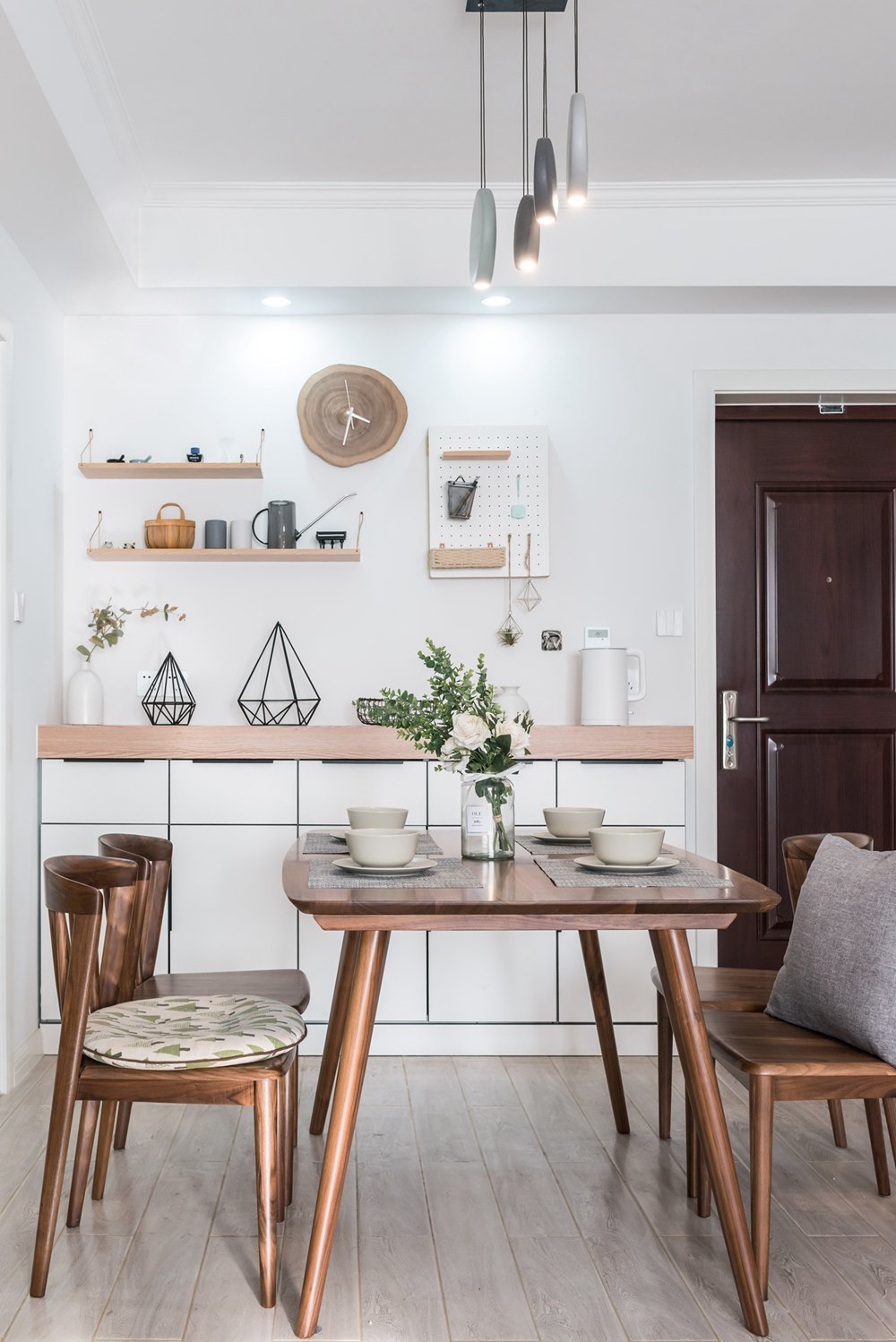 這是一套很經典的混搭風,設計師創新性地把北歐風和日式風結合了起來,但是卻不顯得突兀,有一種和諧的美感。既有北歐風簡潔與精煉,又有日式風的優雅質感。
