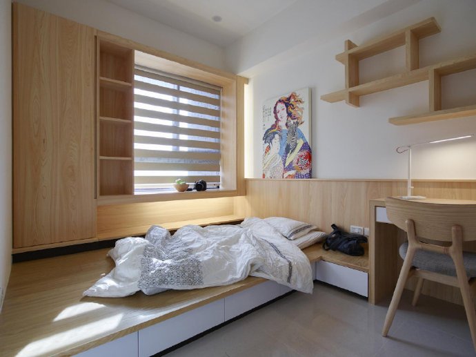 整體色調風格都是按照女業主的喜好來設計,加入了日式的和雅,原木的自然,讓原本的空間具有了生活的氣息;開放式的設計因為隔斷、飄窗、多了功能與意境上的靈動;以簡單與實用為出發,并借灰色與白色的軟裝來渲染空間,讓空間更為沉寂,給主人一個舒適、安謐的空間。