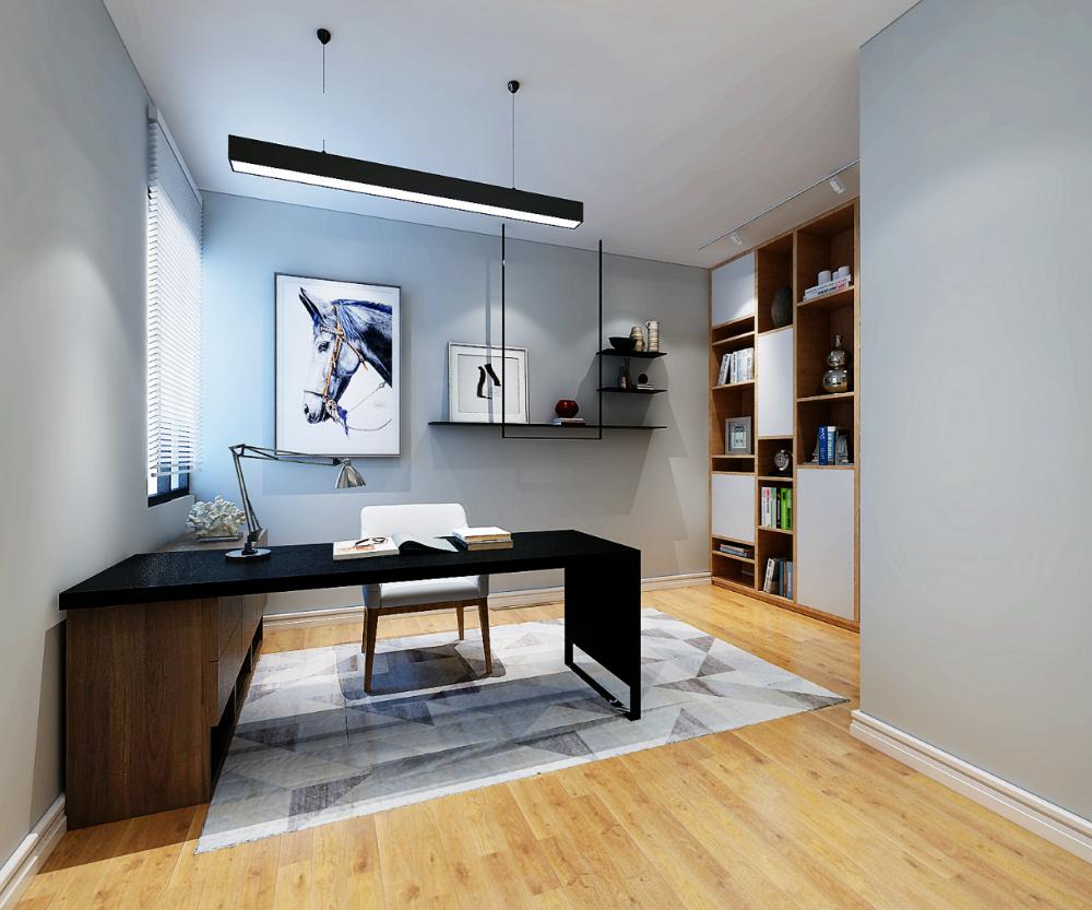 書房可以定制一面書柜,占據(jù)了滿滿當當?shù)囊幻鎵Γ瑫r風格也能和整體的家裝風格相匹配,儲物空間也規(guī)劃得很合理,留白的設計讓整個書柜不會顯得太過擁擠。