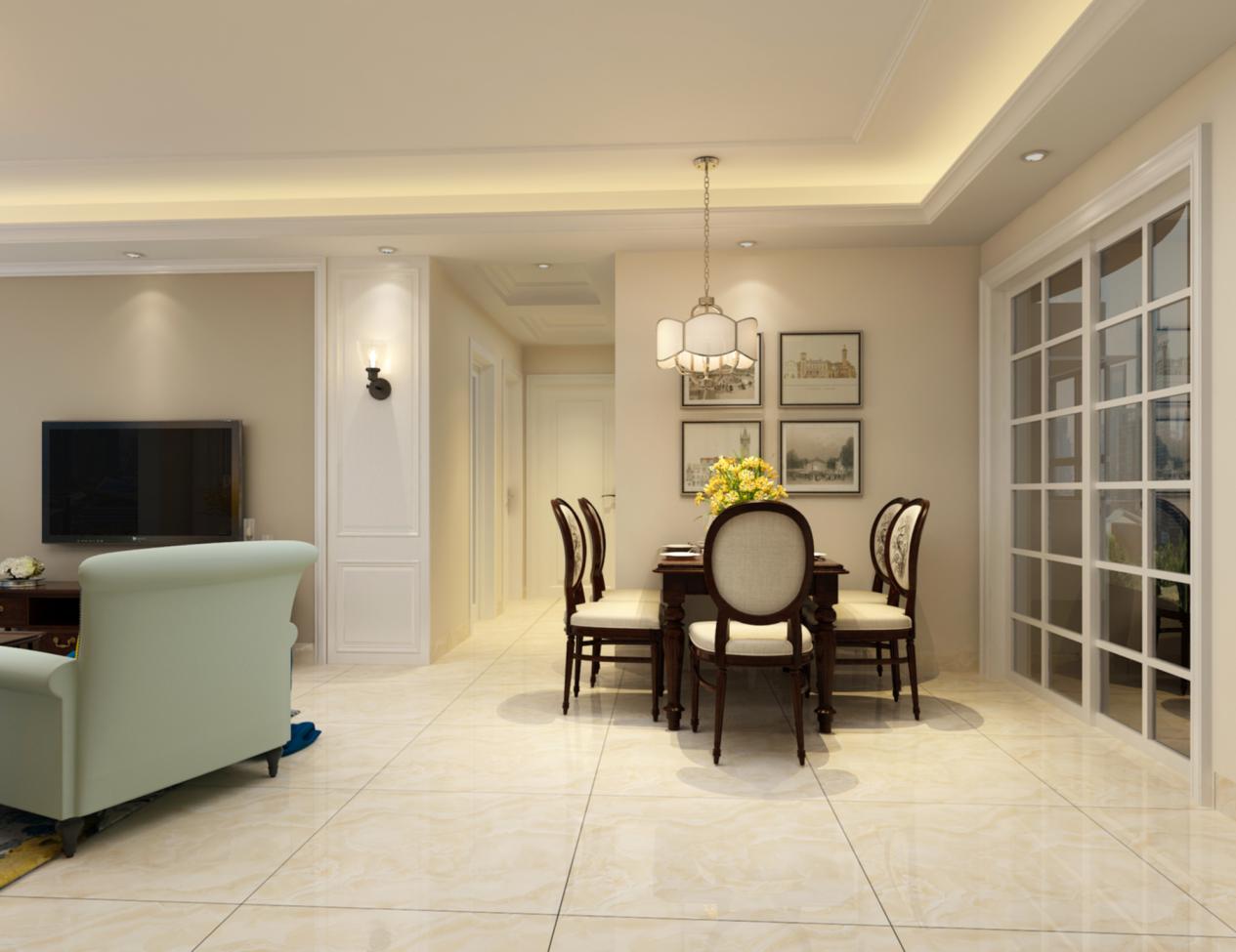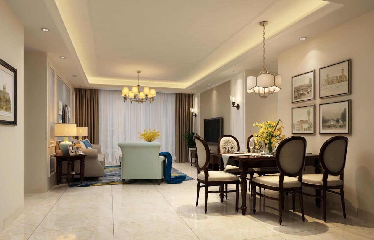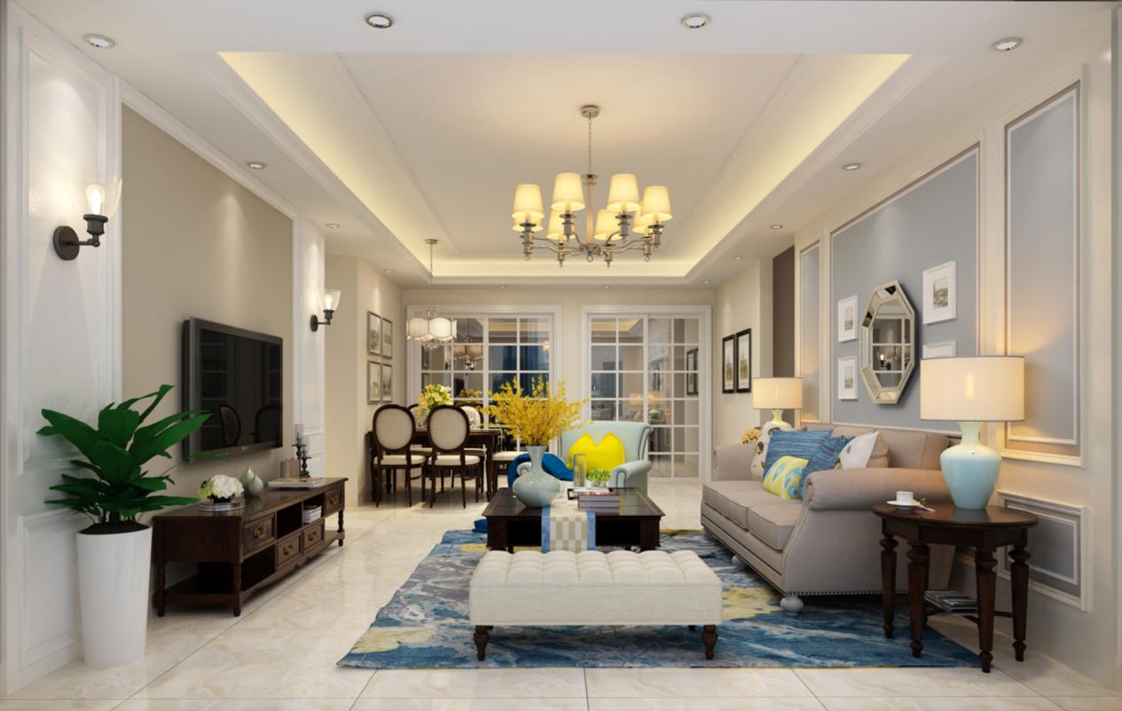 簡單明了的色調,但是也不乏輕奢華貴,有很多小設計都別出心裁,就拿電視背景墻的兩個壁燈來說,很有美式城堡的感覺。適當不過度的綠植點綴了整個空間,多了幾分閑情雅致與溫馨舒適。